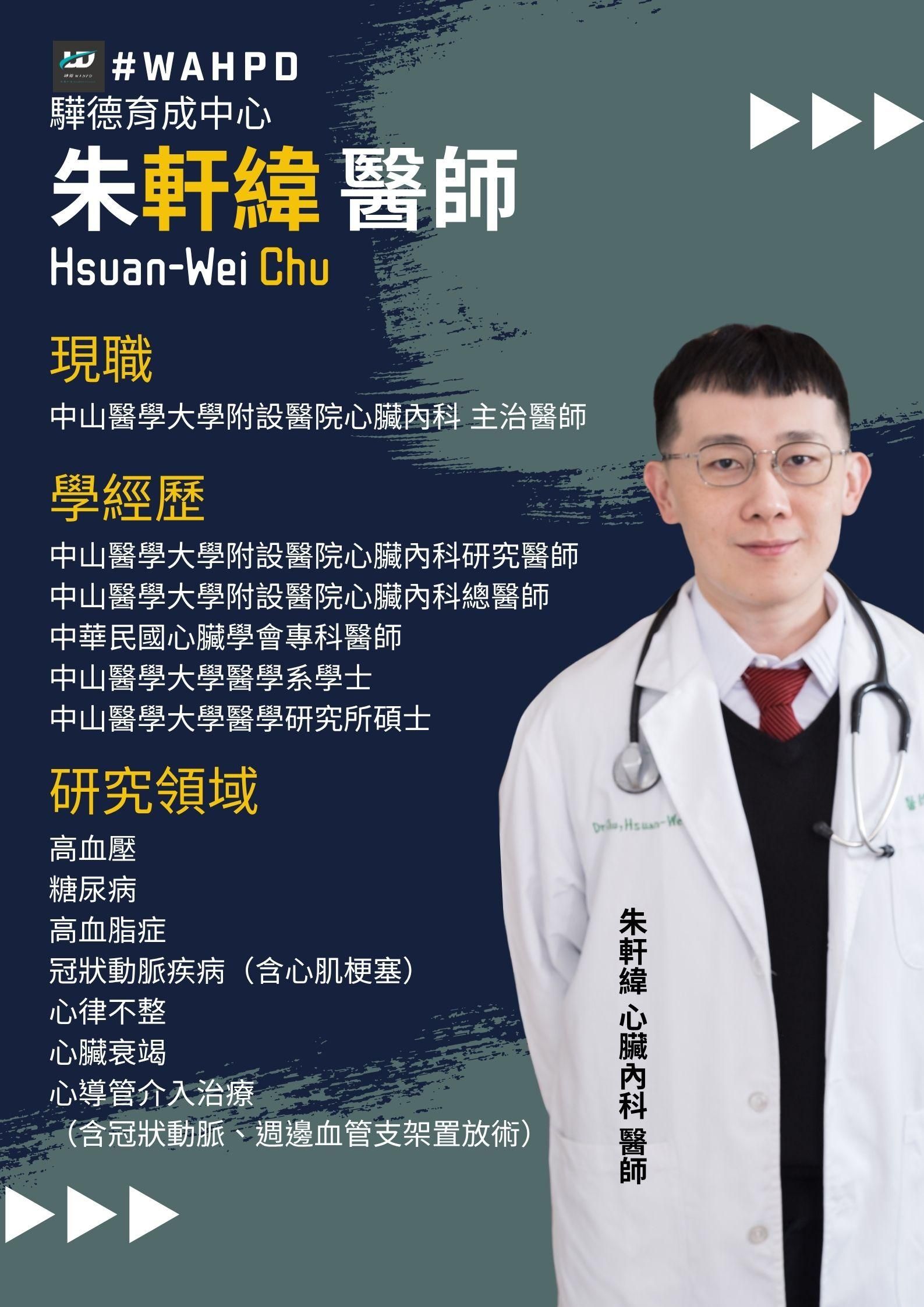 現職 中山醫學大學附設醫院心臟內科 主治醫師 學經歷 中山醫學大學附設醫院心臟內科研究醫師中山醫學大學附設醫院心臟內科總醫師 中華民國心臟學會專科醫師 中山醫學大學醫學系學士 中山醫學大學醫學研究所碩士 研究領域 高血壓 糖尿病 高血脂症 冠狀動脈疾病(含心肌梗塞) 心律不整 心臟衰竭 心導管介入治療 (含冠狀動脈、週邊血管支架置放術)